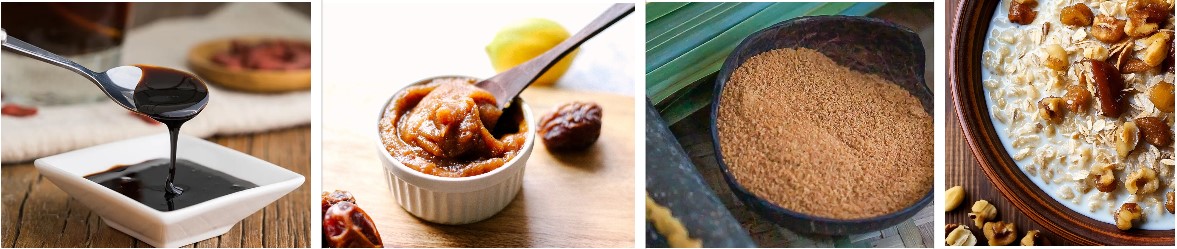 Date syrup and paste are used to naturally sweeten and flavor plant-based milks, dairy drinks, smoothies, and yogurts, providing a rich flavor profile without refined sugars.